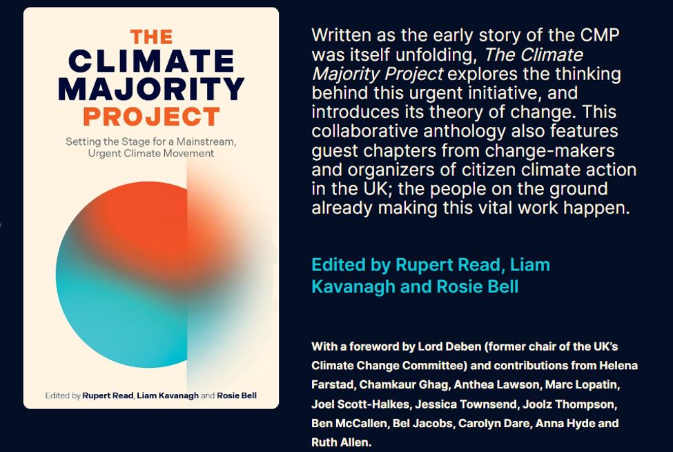 Rupert Read, former Ealing resident and Green councillor on Norwich Council for 7 years, is holding a London book launch of his latest book, on Sunday May 19th from 2.00 to 6.00pm. The book is called ‘THE CLIMATE MAJORITY PROJECT’, and was co-edited and co-authored with Rosie Bell and Liam Kavanagh. At 4pm there will be a short talk from one of the other contributors to the book, and a chance to ask questions about the book and about the Climate Majority Project itself. If you would like to attend please RSVP to steering@ealingtransition.org for more details.