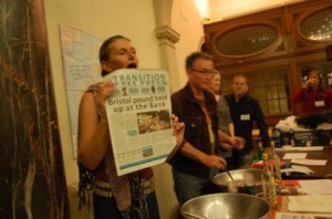 Before the opening circle of the conference, I was present at the launch of the Transition Free Press, the new quarterly newspaper for the Transition movement, to be available on paper and electronically. The whole team made speeches in the foyer and I tried some of the homemade herbal Pimms. Transition initiatives will be asked if they wish to purchase copies of the paper newsletter, for resale or offering to interested people. Minimum orders are required to make the venture financially viable.