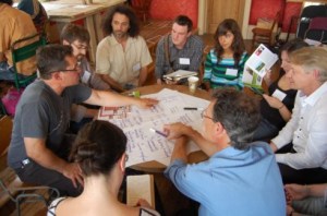 This workshop was run by an organisation consultant and professional facilitator, Martin Grimshaw, who offered his experience of working with Transition initiatives and other similar organisations to help us pinpoint the qualities, attitudes and behaviours needed to lead effectively within Transition initiatives. This was a very popular workshop and participants discussed common challenges such as who really has the power in “consensus” decision-making, and how to lead without either dominating or being afraid to take personal initiative.